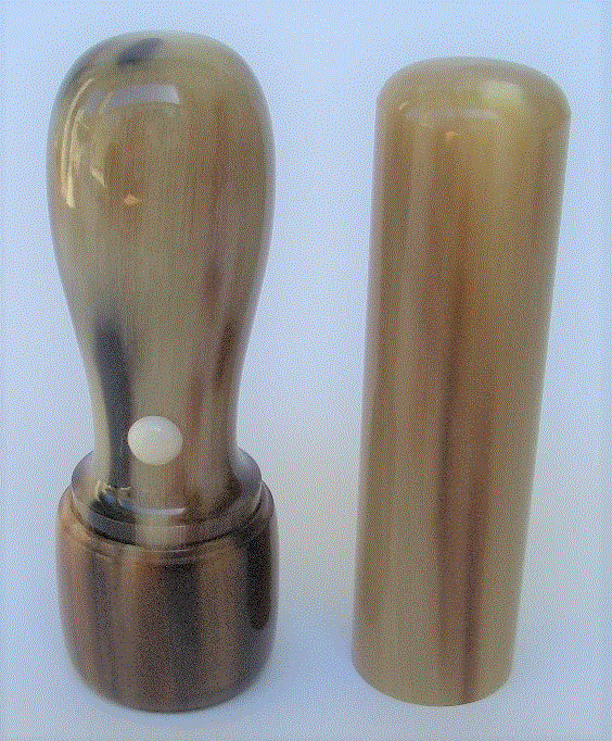 オランダ水牛の角を加工した印鑑になります。色合いが柔らかく、個々に異なるのが魅力の最上級品です。 | ||