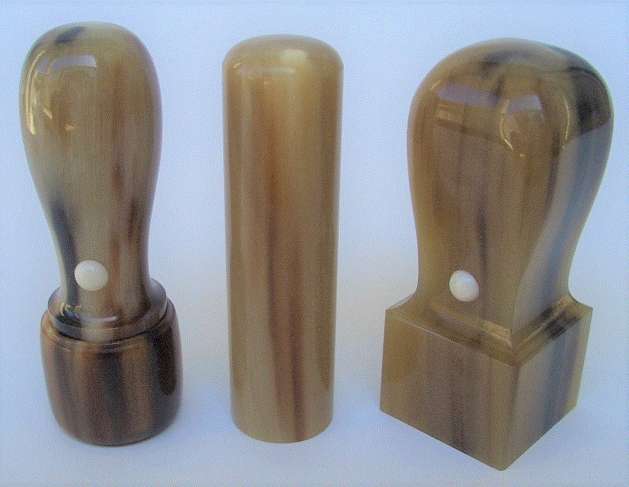 オランダ水牛の角を加工した印鑑になります。色合いが柔らかく、個々に異なるのが魅力の最上級品です。 | ||