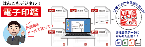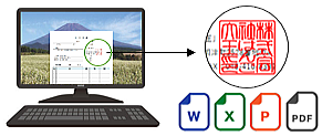 | 電子印鑑とは、パソコンやスマートホンで 使用できるハンコのことです。 印影を透過PNG形式の画像データにして メール添付納品します。 |