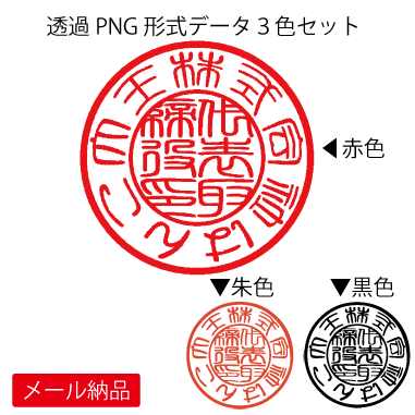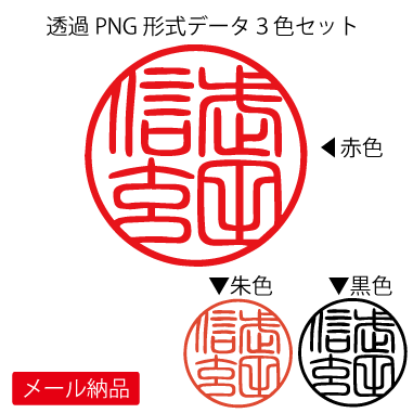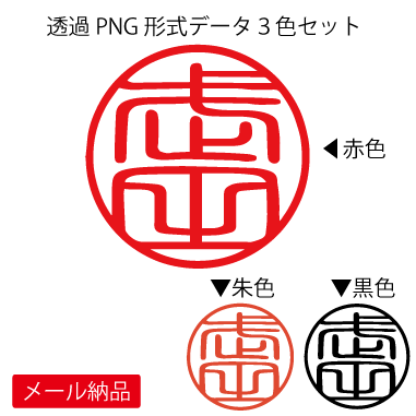 ■電子印鑑サンプルをダウンロードで 確認出来ます。 透過処理PNGファイル (朱・赤・黒色の印影3色SET) |