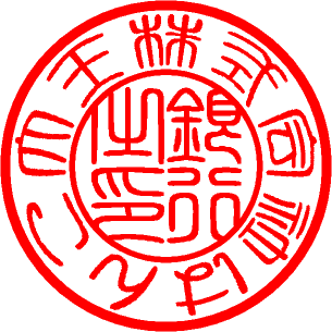 | ・外枠・・・会社名・団体名・屋号 ・内枠・・・銀行之印 ・書体・・・偽造されにくい。バランスが良い。等の 理由で、てん書体が人気です。 |